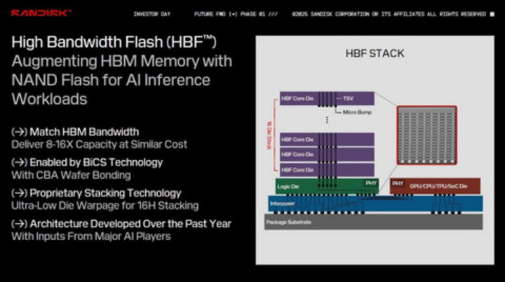 SK海力士将与Sandisk合作开发HBF并制定其规范。SK海力士是主要的DRAM和NAND闪存制造商,也是最大的HBM供应商。TSV技术对HBF至关重要。Sandisk目前尚无TSV技术量产的记录,因此SK海力士是理想的合作伙伴。SK海力士拥有HBM(也采用TSV技术)的量产记录,并且对NAND闪存非常了解。