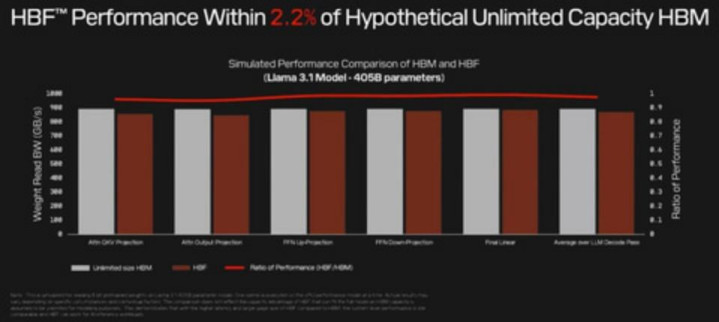 HBF的推理性能与无限大容量的HBM几乎相同