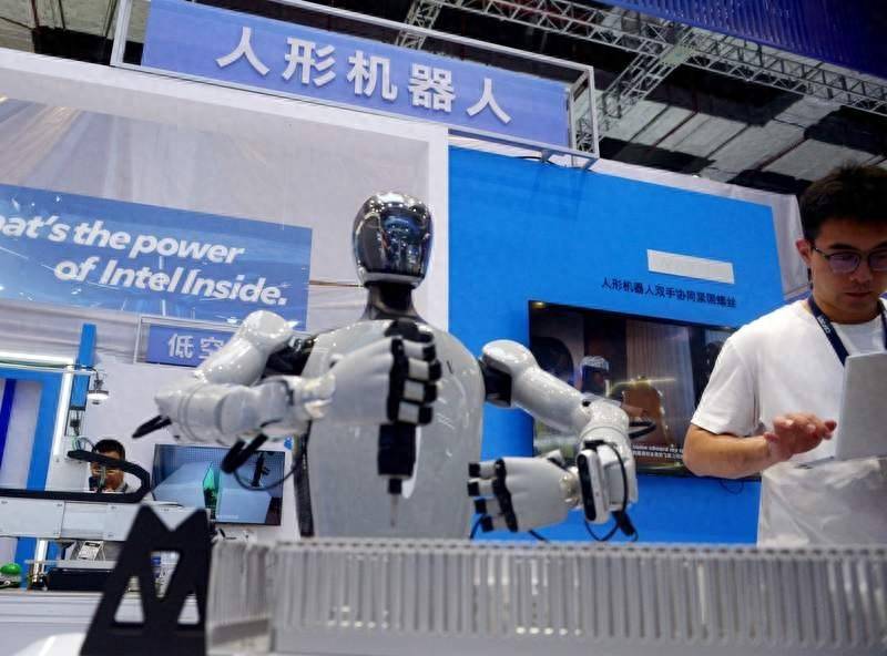 9月23日。以“工业新质昆明配资公司,智造无界”为主题的第二十五届中国国际工业博览会当天在国家会展中心(上海)开幕。人形机器人在演示操作技艺。图/ic